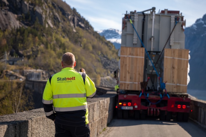— Det har vært fire krevende transporter på grunn av svinger og smal kjørebane. Vi har også passert smal tunnel og hadde knappe 15 centimeter på hver side av hengeren da vi rygget over Ringedalsdammen i en sving. Men vi var godt forberedt, og alle transportene har gått bra, forklarer prosjektleder for transporten, Ove Lieng i Statnett.