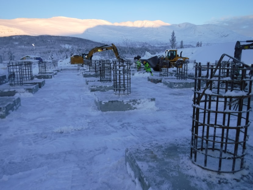 Denne uken vil bunnplaten i transformatorsjakten støpes, og hele 160 m3 betong går med til dette. Dernest skal fundamentsøylene til apparatanleggene støpes.